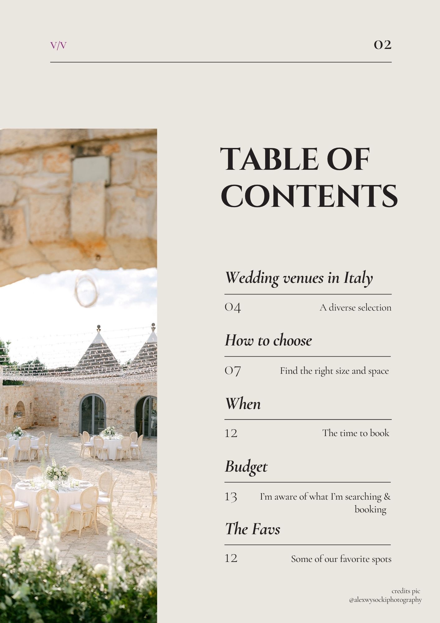 Find the perfect setting for your Italian wedding with confidence and clarity. “Views & Vows” is your essential first step to choosing a breathtaking location.